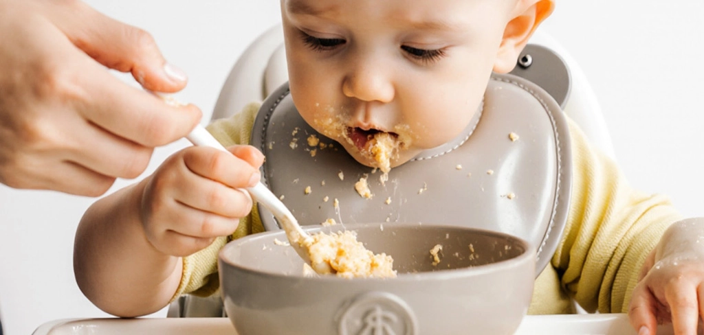 Примените технику «рука в руке»: расположитесь позади ребенка, поместите его руку поверх ложки, охватите ложку целиком его ладонью (используя ладонный хват), учитывая, что мелкая моторика еще формируется. Наложите свою руку на руку ребенка, поднимите ложку и опустите в тарелку, набирая пищу. Поднесите ложку ко рту, коснитесь губ, дайте малышу возможность снять еду с ложки, затем опустите ложку обратно в тарелку. Дайте ребенку время на осознание процесса, а затем повторите весь алгоритм сначала. Со временем захват ложки станет более сложным и правильным, когда движения станут независимыми, скоординированными и уверенными.