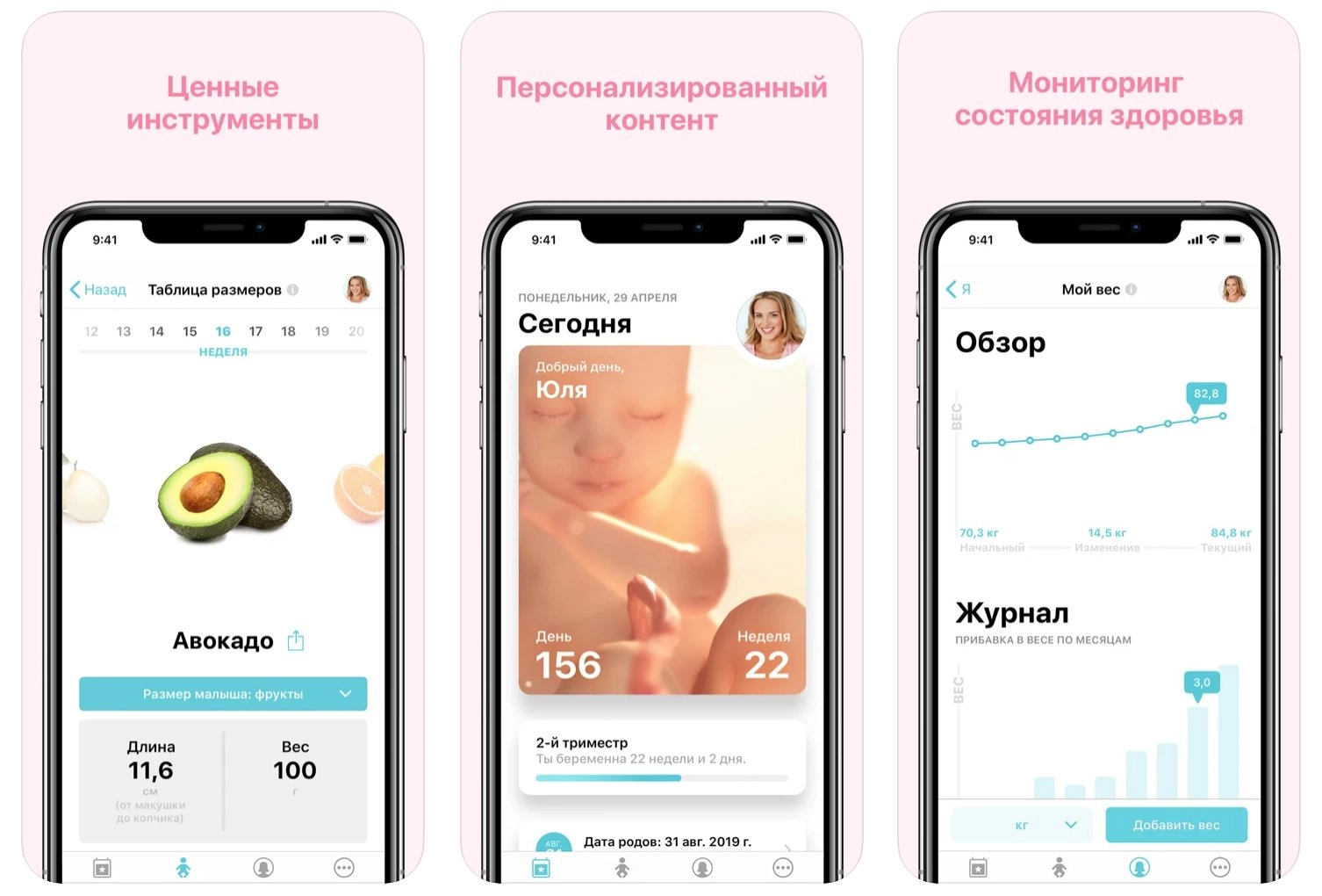 Еще одно популярное приложение для беременных — «amma Календарь беременности». Оно позволяет отслеживать срок беременности, увеличение массы тела, объем живота и размер растущего в нем младенца. В приложении также можно найти статьи — об изменениях, происходящих в организме, сменах настроения, взаимоотношениях с супругом и так далее.