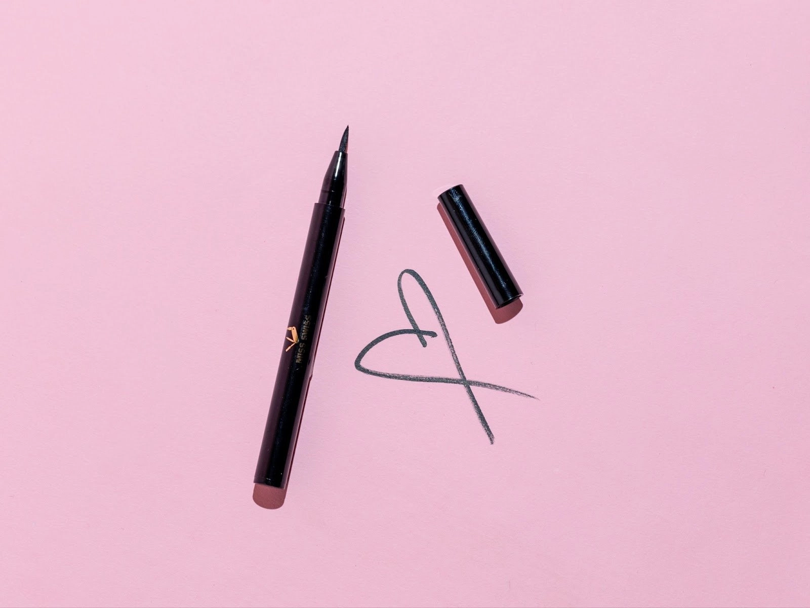 Тифлокомментарий: цветная фотография. На розовом фоне лежит тонкий черный маркер. Между ним и колпачком виден росчерк, напоминающий сердечко.