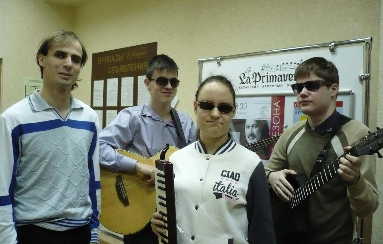 Дмитрий Бикчентаев — композитор, автор-исполнитель, продюсер и педагог — обучает игре на гитаре по собственной авторской методике. В 2013 году он возглавил музыкальный коллектив из троих незрячих учеников