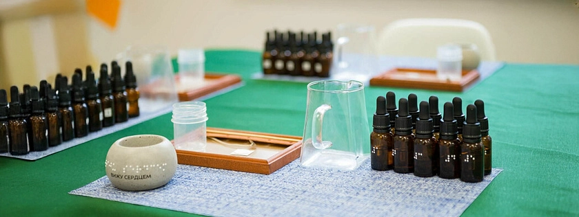 Мастерские, где занимаются дети, адаптированы для того, чтобы в них было удобно работать на ощупь. Формы для заливки воском и флаконы подписаны шрифтом Брайля.